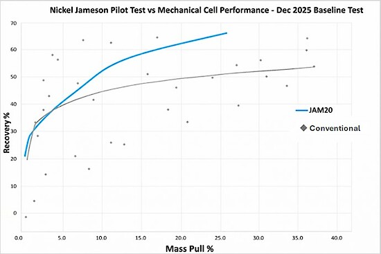 While management cautions that results are preliminary, they are considered significant given their apparent improvement compared with historical values. Jameson technology could also produce further upsides, including reduced circulating loads, simplified rougher-cleaning stages and improved overall flotation efficiency.